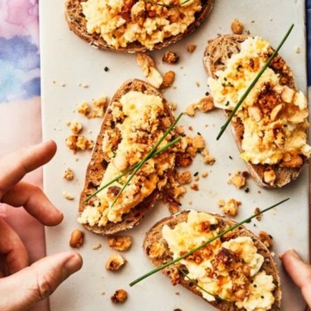 Explosão de Texturas: Torrada Gourmet com Ovos e Crumble de Amendoim